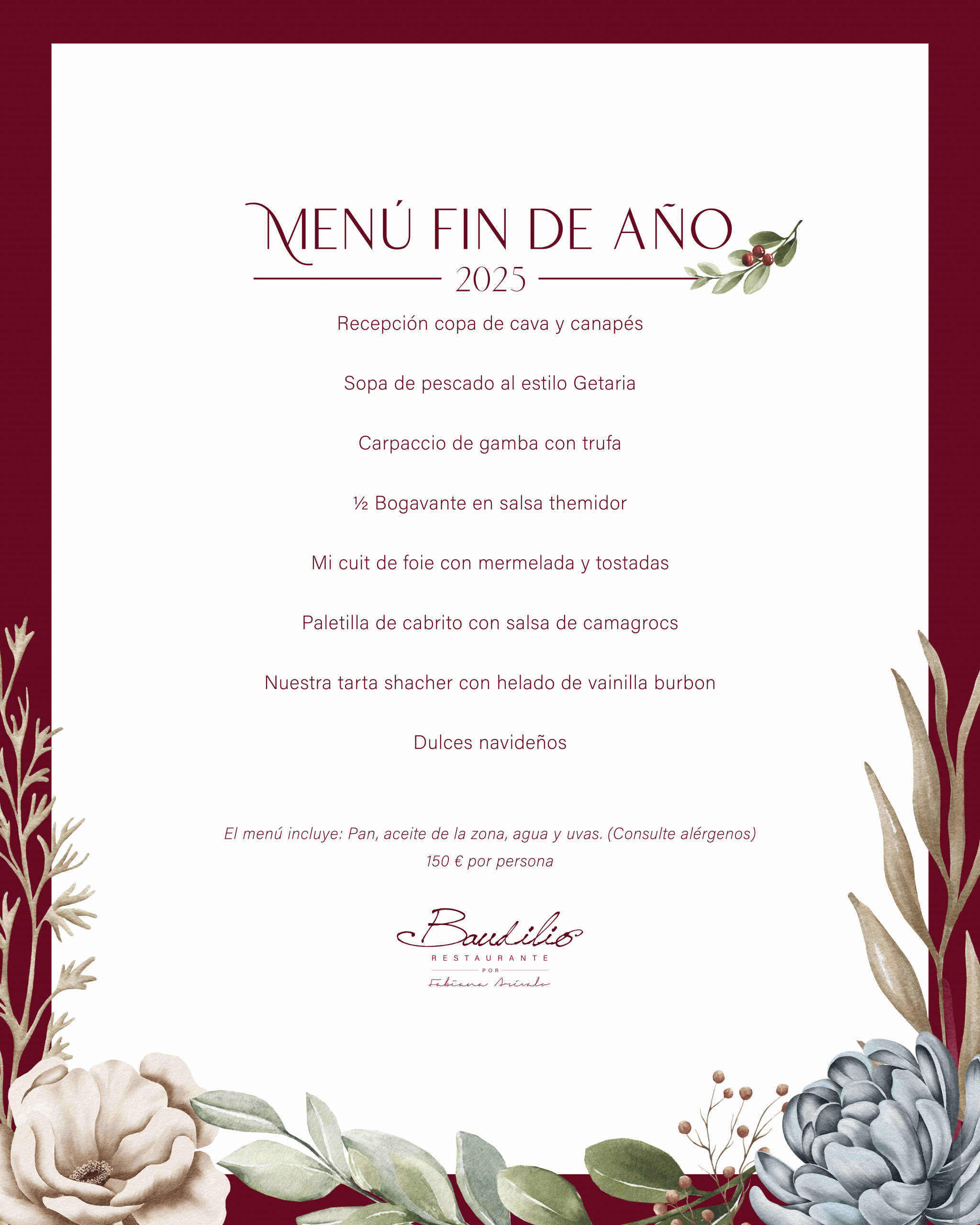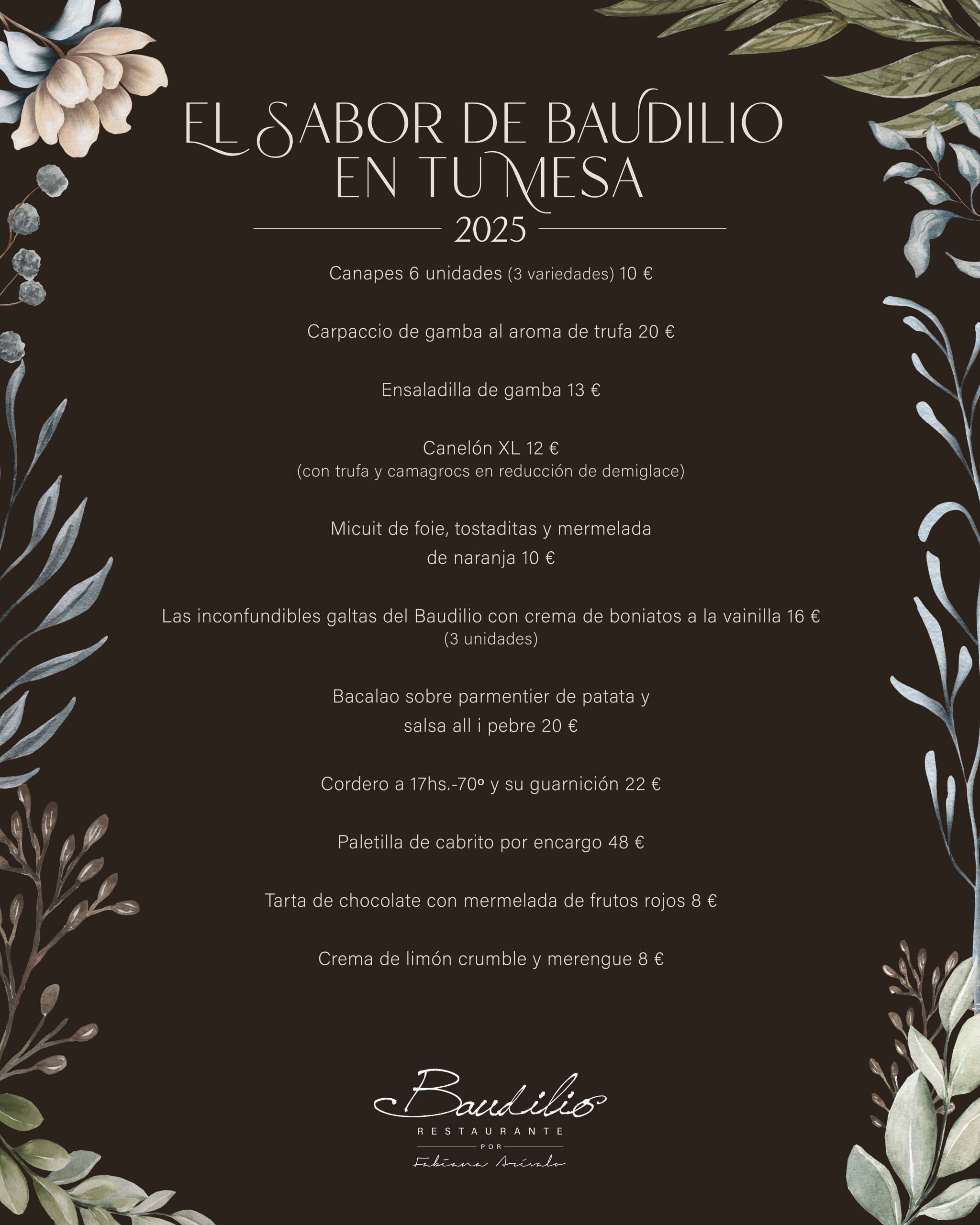 Abierto desde diciembre del año 2012 el Restaurante Baudilio es un pequeño restaurante resultado de un sueño y mucho esfuerzo, ahora, una realidad que puede brindar servicio a veintiocho comensales, en un ambiente cálido y elegante. Consta de una primera planta en la cual se sitúa el comedor principal, siempre y para quienes lo soliciten hay una mesa preparada en la planta baja.